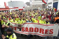 Más de 500 trabajadores portuarios se manifestaron a las 09:00 horas en la plaza de Belén María y media hora después acudieron a la sede de la Autoridad Portuaria, donde exigieron al presidente, Luis Ibarra, que les recibiera para que les explicase los proyectos de futuro de este enclave. Posteriormente, Ibarra se reunió con los representantes de los estibadores, de los bomberos, de los trabajadores de la Autoridad portuaria, de los empleados de Opcsa, de reparaciones navales y de los de La Luz- Boluda.