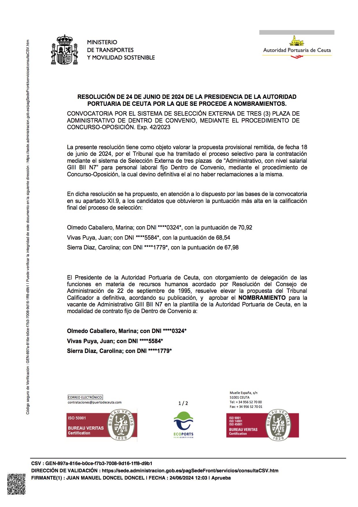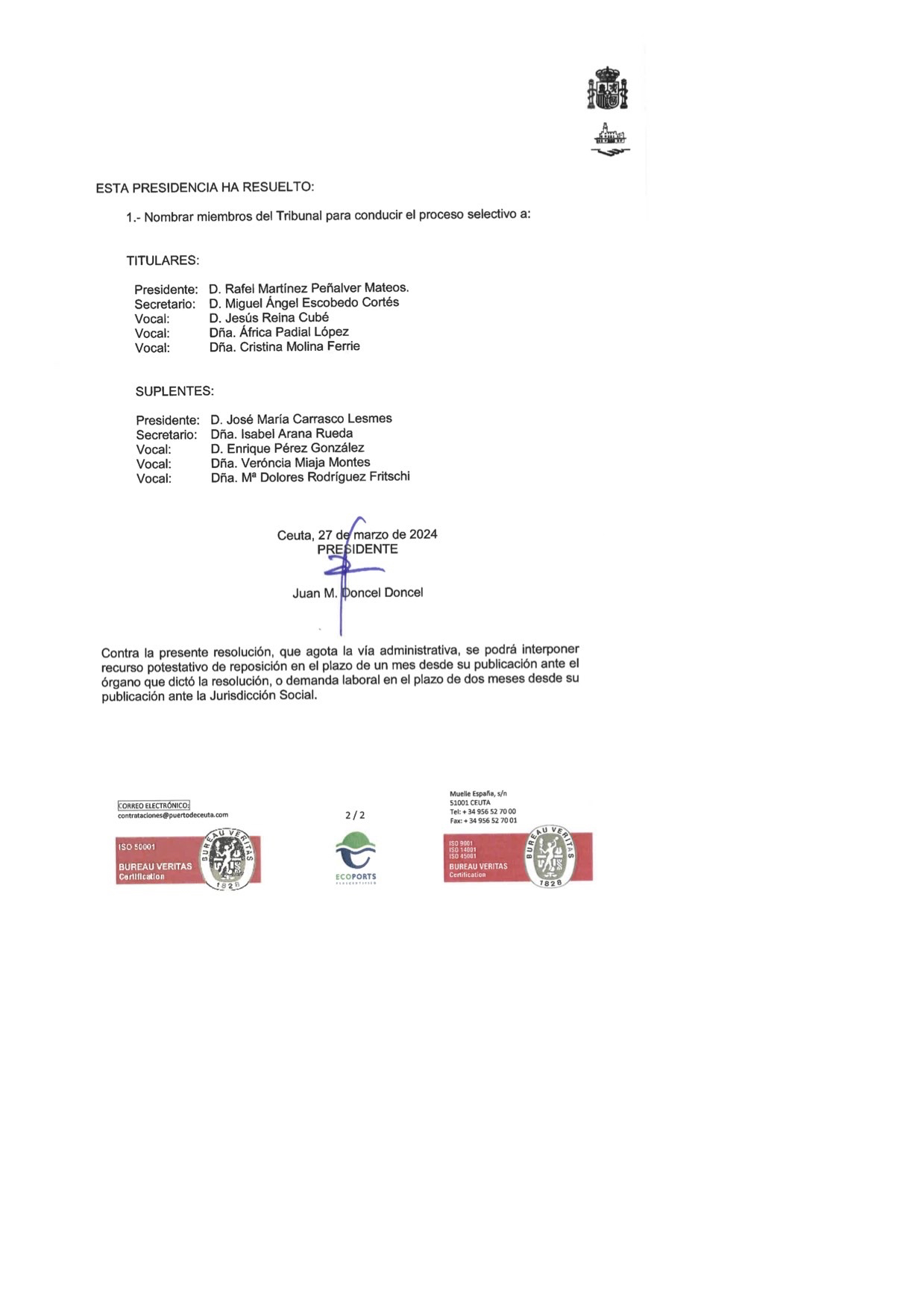 Ceuta, 5 de marzo de 2024 PRESIDENTE Juan M. Doncel Doncel