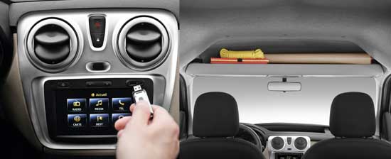 El interior se ha construido en torno a un salpicadero moderno y funcional que ofrece múltiples espacios portaobjetos ideados para un uso intensivo. Las amplias superficies redondeadas refuerzan la sensación de solidez. Según el acabado, el revestimiento bitono del salpicadero también aparece en los paneles de puerta. El nuevo diseño de los contadores heredado de Dacia Lodgy y la integración del sistema multimedia Media Nav modernizan el ambiente a bordo y le proporcionan un aspecto más tecnológico.